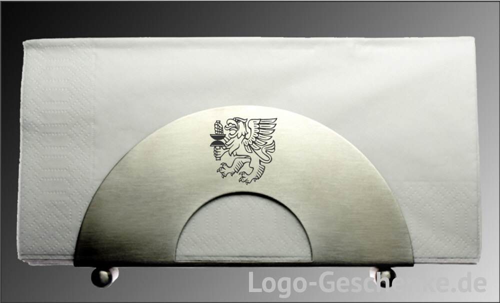 Platziere jetzt Deine Servietten stilvoll auf Deiner Tafel. Der Serviettenhalter aus zeitlosem Edelstahl findet auf jedem Tisch seinen Platz und veredelt jede Tisch-Deko. Verschiedenste Design-Varianten können nach Deinen Vorgaben umgesetzt werden.